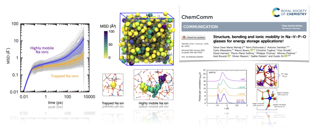 S. Wendji, R. Piotrowski, A. Familiari, C. Massobrio, M. Boero, C. Tugene, F. Shuaib, D. Hamani, P. Geffroy, P. Thomas, A. Pedone, A. Bouzid, O. Masson, G. Delaizir, G. Ori, Structure, bonding and ionic mobility in Na-V-P-O glasses for energy storage applications, Chemical Communications 61 (2025) 10993–10996.